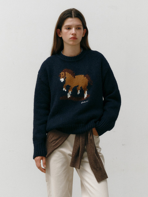 [오스트카카] 알파카 노르딕 자카드 가디건 네이비