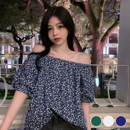 [셀럽하우스]퍼프소매 OCXQ6089 꽃무늬 블라우스 반팔 오프숄더