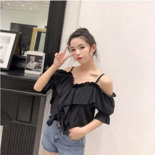 여성 여름 오프숄더 블라우스 숏 기장 허리 조임 디자인yy