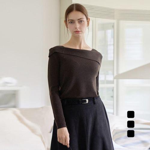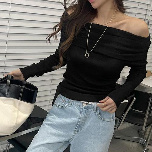 [옷자락] 여성 골지 오프숄더 긴팔 니트탑