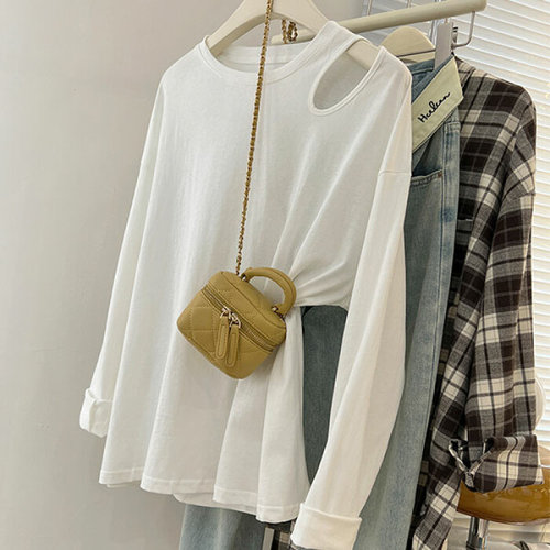 슈팅스타 / 심플 라운드넥 오프숄더 유니크 루즈핏 긴팔티