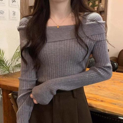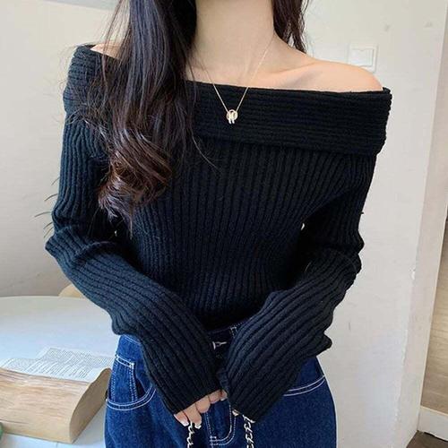 여성 봄가을 슬림핏 오프숄더 긴팔 니트