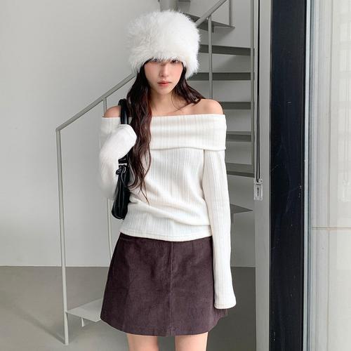 (여리한쇄골라인/여성스러움UP) 오브텐 슬림 골지 언발 오프숄더 니트 nt5191