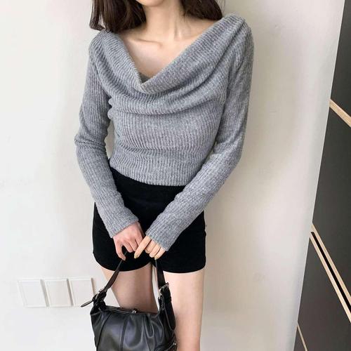 [옷자락]여자 가오리핏 보트넥 오프숄더 소매 시보리 니트