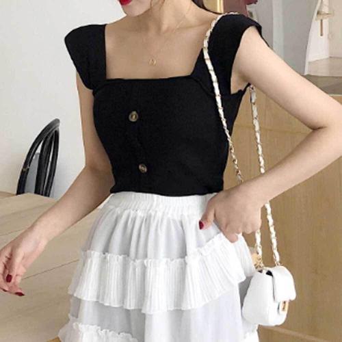 [셀럽하우스]스퀘어넥 NCHM3466 오프숄더 니트 여자 여름 데일리 데이트룩