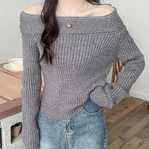HOTBBA / 슬림 오프숄더 니트 긴팔 티셔츠 DA_1005417