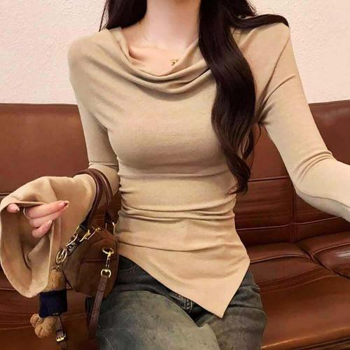 여성 가을티 스판티셔츠 간절기 긴팔 봄가을티 입술넥 봄 긴팔티 오프숄더
