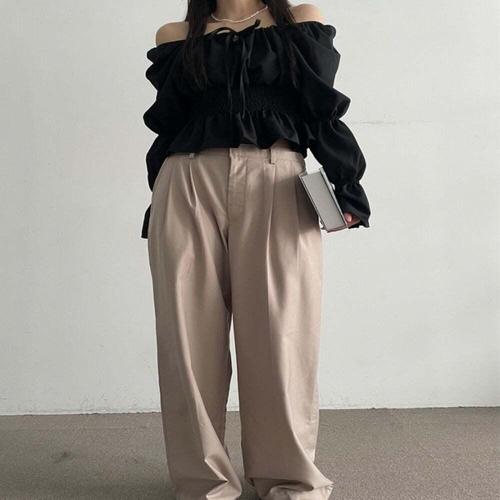 [셀럽하우스]여성 ZOAG3624 스모킹 쉬폰 긴팔 프릴 블라우스 오프숄더 퍼프
