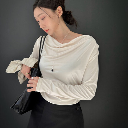 [옷자락]여성 심플 초커넥 레이온 스판 보트넥 언발 긴팔티