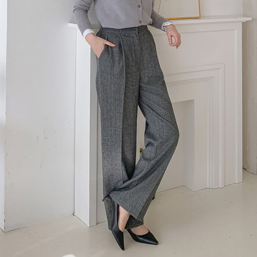 옷자락 / 여자 오피스룩 핀턱 세미 와이드핏 헤링본 울 슬랙스