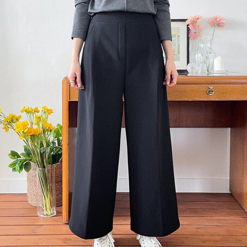 [옷자락]여자 겨울오피스룩 핀턱 A라인 와이드 스판 검정 바지