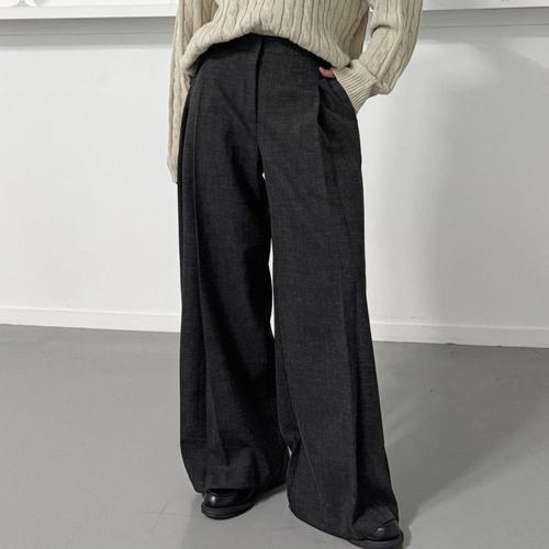 옷자락 / 여자 겨울 오피스룩 맥시 핀턱 와이드핏 하객 슬랙스