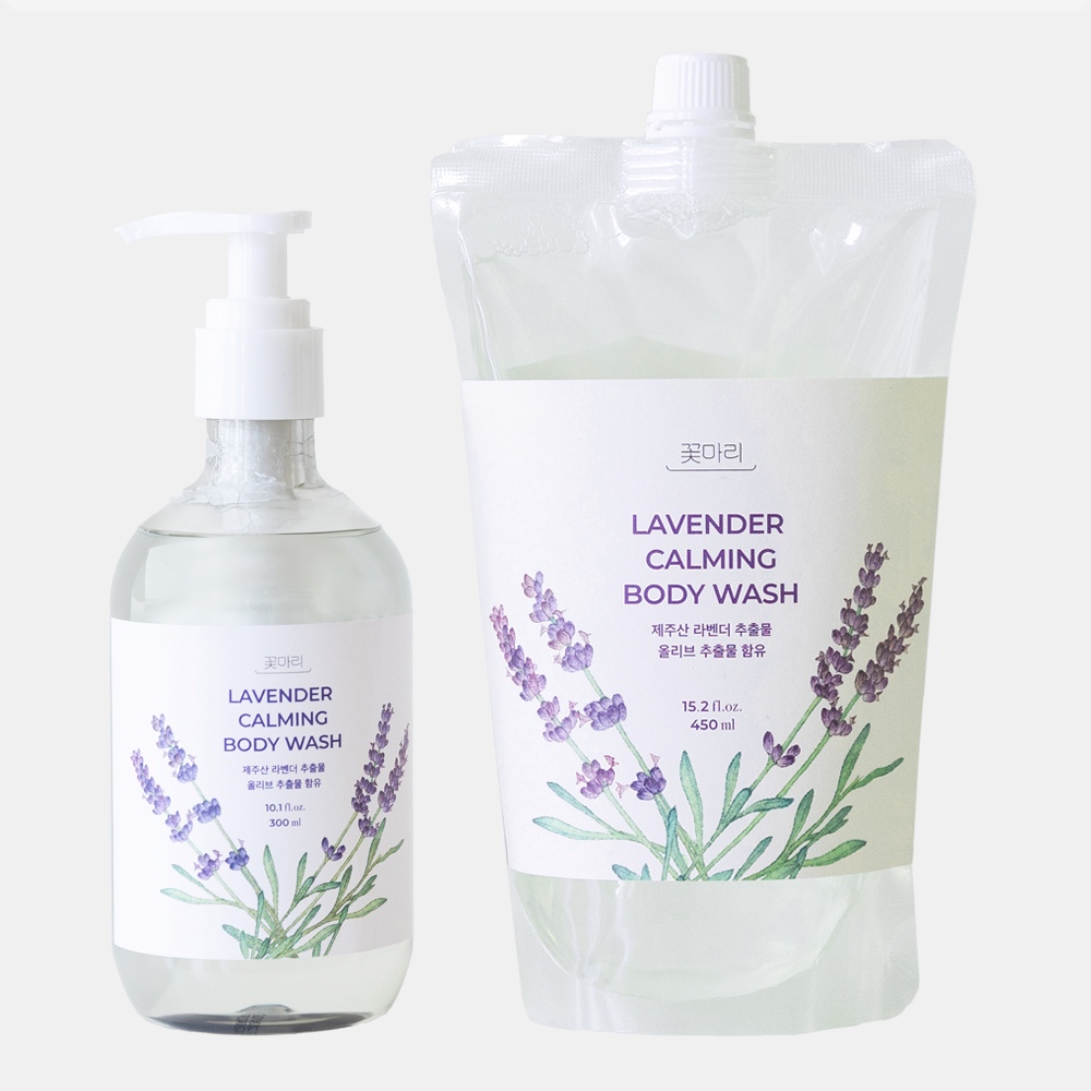 꽃마리 라벤더 카밍 비건 바디워시 300ml+리필 450ml 제주 허브 저자극 온가족 샤워