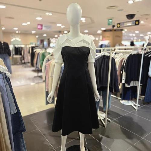 [올리브데올리브]셔츠 배색 오픈 숄더 핏앤 플레어 원피스 OW4WO9780