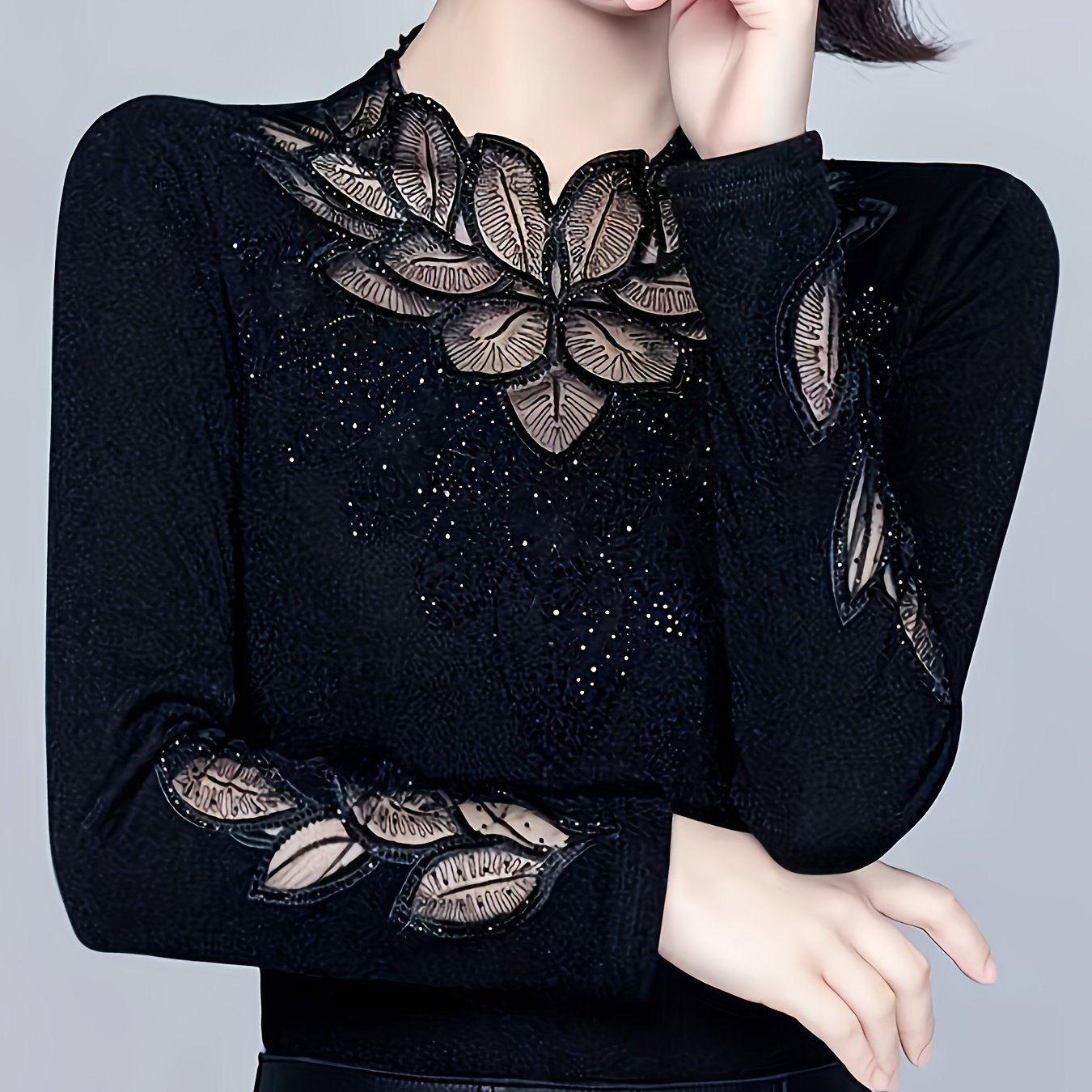 플러스 사이즈 레이스 아플리케 브이넥 블라우스: 쇼핑, 데이트 및 일상 출퇴근을 위한 시크한 우아함 1-5XL.