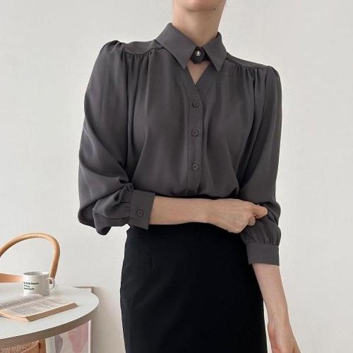 [신상오픈런]|KSH2C0D|콘올리 주름디테일 비즈펄 카라 여성 블라우스 가을하객 슬릿_18154857_597559