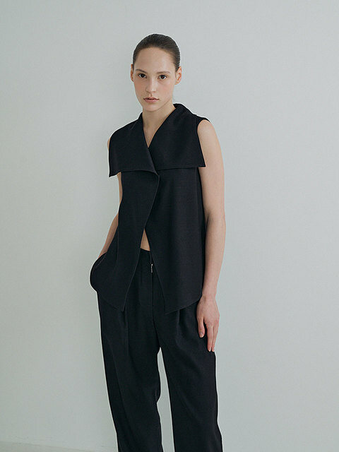 [플로우먼] Sailor Collar Linen Vest_Black