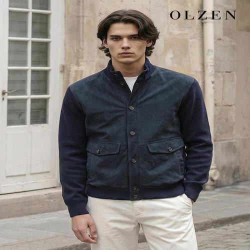 [올젠]스웨이드 니트 배색 점퍼 (ZOE1EC1341)