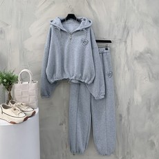 [행복여] 땡스 하트 자수 후드 집업 밑단 스트링 와이드 기모 팬츠 세트