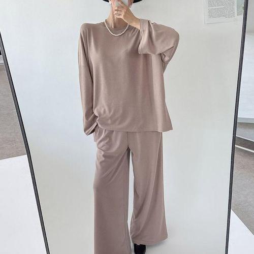 파라노말샵 / (투피스) 고슬 라운드 오버핏 긴팔티 와이드 팬츠 통