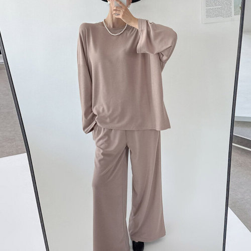 여성 투피스 니트 세트 랩 상의 와이드팬츠