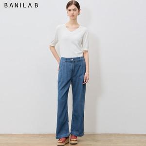[에이치플러스몰]퓨어 코튼 세미와이드 롱 팬츠 데님 레깅스 팬츠 밴딩