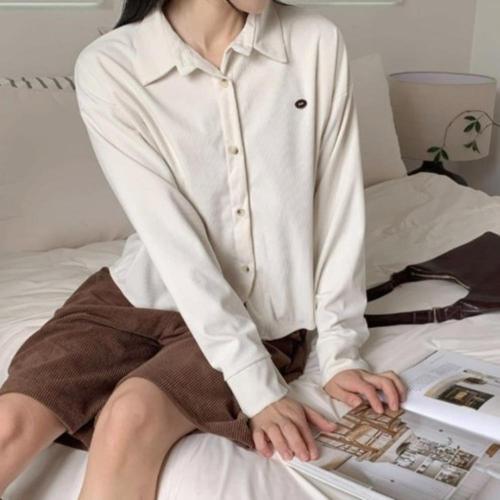 [옷자락] 여자 키치무드 와펜 무지컬러 골덴 여유핏 남방
