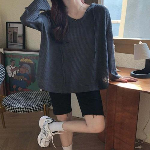 [셀럽하우스]와플패턴 FMJB6504 후드티 여자후드티 후드니트 후드긴팔티셔츠