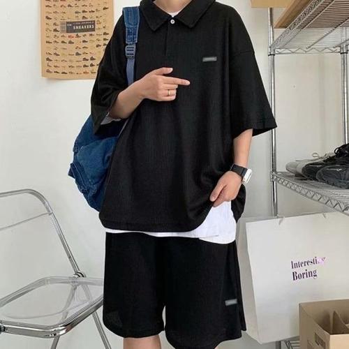 [셀러허브_여성트랜드패션]와플패턴세트 스포티 반팔반바지셋업 여름 남자여름코디 외출복세트 남성복세..