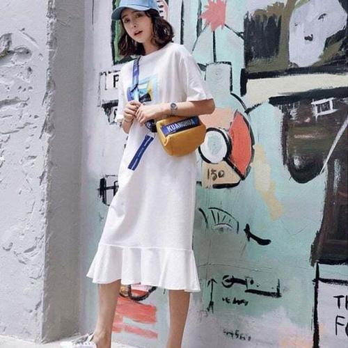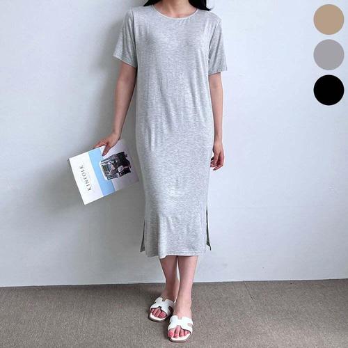 [모노무드]모노무드 여자 루즈핏 반팔 롱 원피스 옆트임 여름 외출 홈웨어