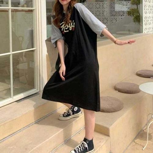 [모노무드]모노무드 HURK-343 여성 검정색 편한 반팔 롱원피스 여름 외출 체형커버