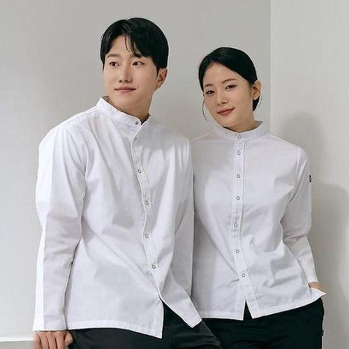 [에이치플러스몰]화이트 스탠딩카라 요리사 주방장 주방유니폼 조리복