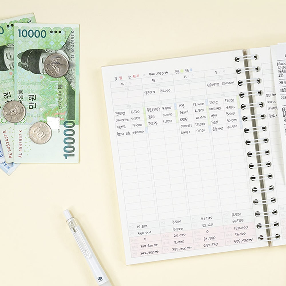 소비노트 만년가계부 다이어리 스프링 제본 금전출납부 캐시북 용돈기입장, 1개, 아이보리
