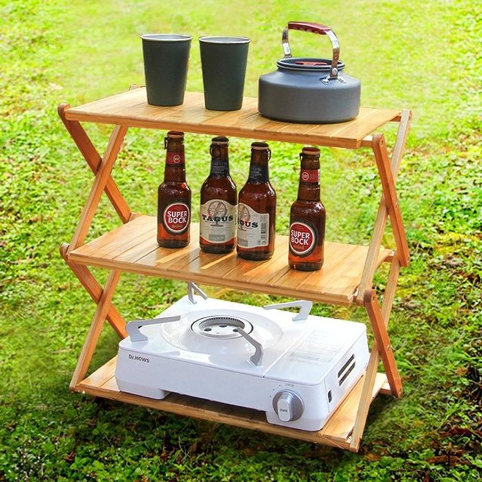 캠핑 테이블 선반 3단 고리형/스탠드/감성/정리대/수납장/수납/조립식/원목/접이식/다용도/나무/폴딩/우드
