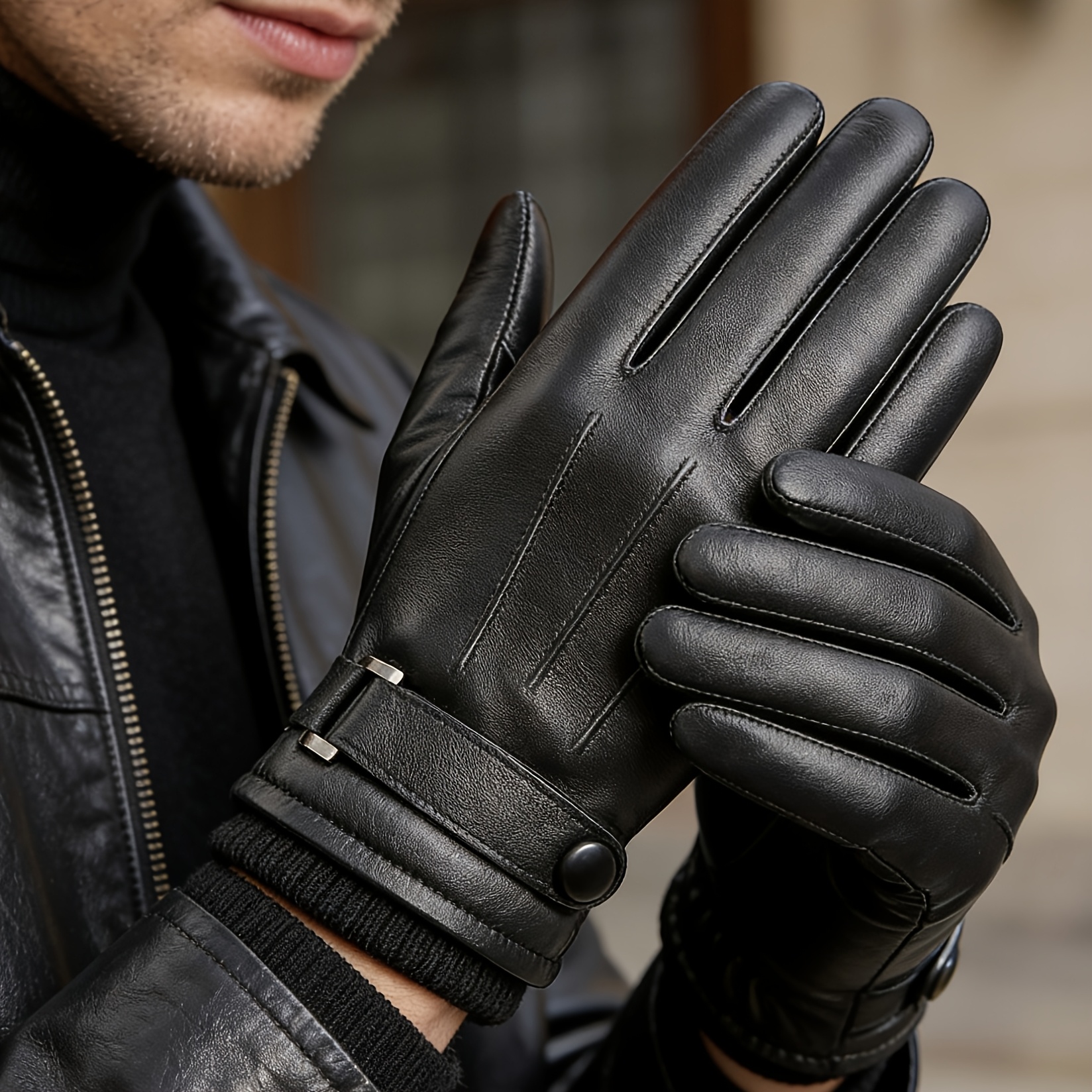 남성용 PU 가죽 블랙 장갑 단추 따뜻한 야외 스포츠 운전 스키 방풍 겨울 용품