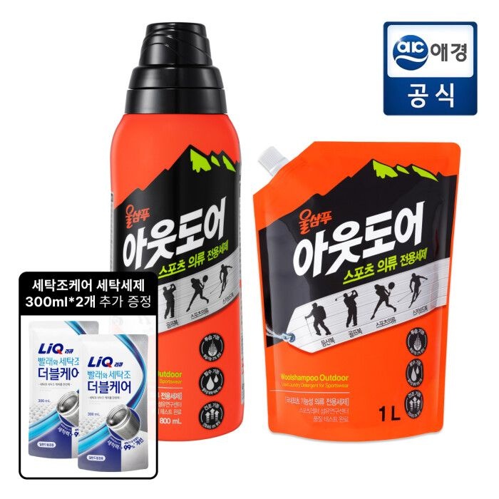 [포토리뷰1,000P]울샴푸 아웃도어 기능성의류 전용세제 본품 800ml + 리필 1L