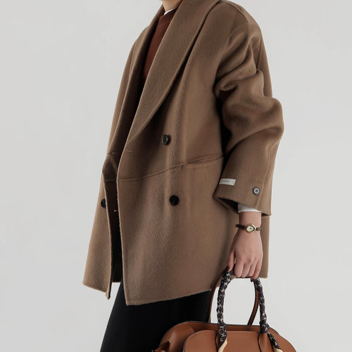 스타일아유 양모 100% 여성 겨울 고급 핸드메이드 미디 코트 루즈핏 보온 울 이중직 아우터 LC0088