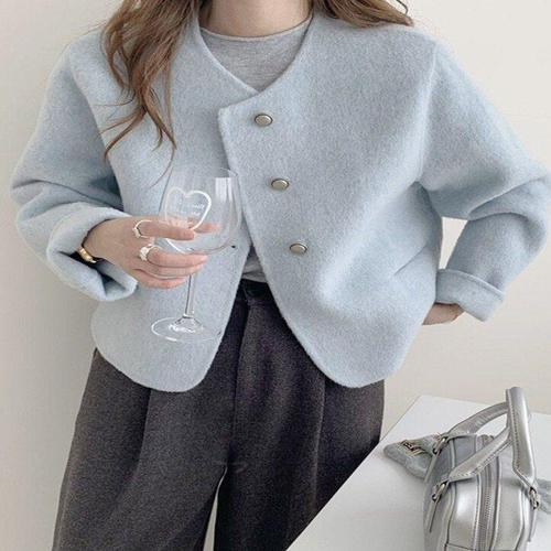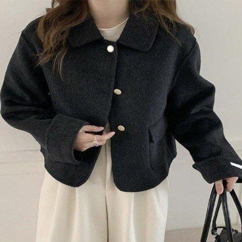 라티움 HC34 25F/W 울100% 핸드메이드 콩단추 노카라 숏짧은 울자켓 T2543jk03