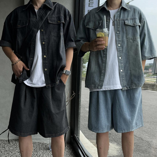 [빌리버스]남성 아이스 반팔 데님셔츠 청남방 청바지 워싱 데님팬츠 셋업 BYHT008
