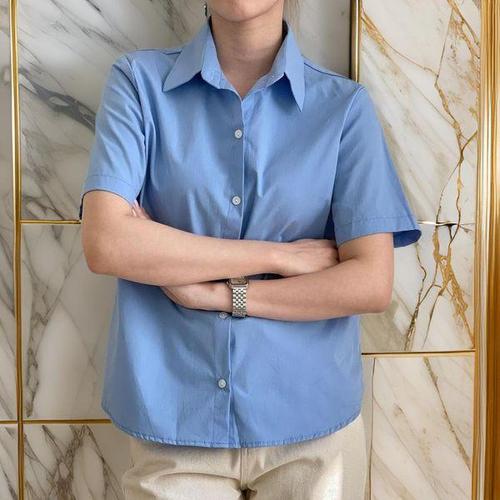 [신상오픈런]옐로우 블루 반팔 셔츠 여성 워싱 면 기본 스타일