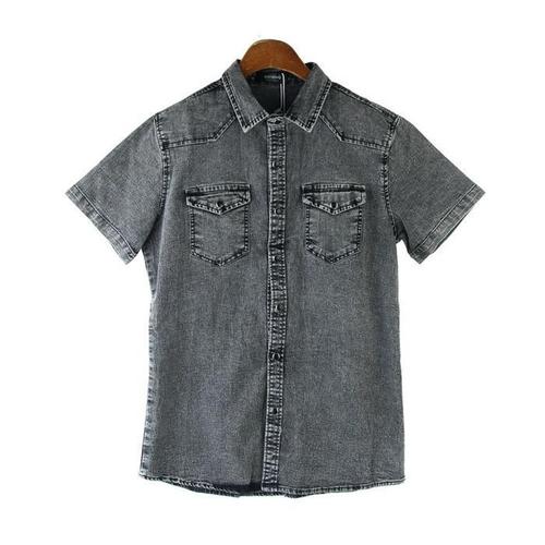 [셀러허브_여성트랜드패션]4색 빈티지 남성청남방 차콜 진청 반팔 워싱