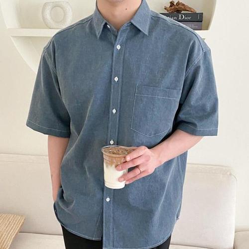 [스콰즈] 남자 투포켓 데님 셔츠 코튼 워싱 반팔 남방 SXR035