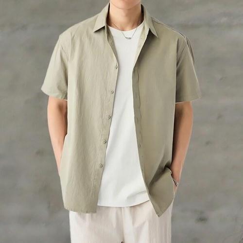 [디자이너몰]여름 신상 워싱 솔리드 면 남성 반팔 셔츠