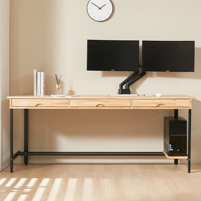 2인 컴퓨터 책상 원목 데스크 2200 책장 대학생 넓은 게이밍 데스크탑 안방 감성