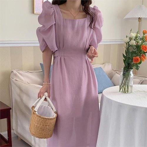 [오노마] ONM 스퀘어넥 볼륨퍼프 보랏빛 로맨틱 봄여름 롱원피스