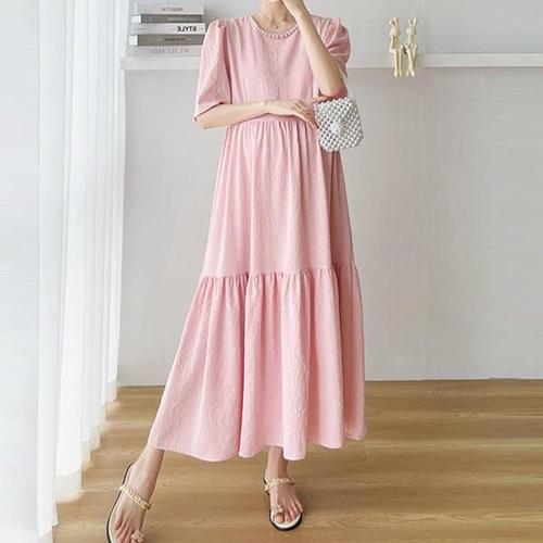 [하젤]메이블 네크리스 퍼프 롱원피스_M2719