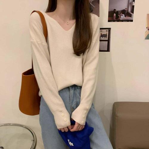 [셀럽하우스]여자 PEFH9191 4컬러 부드러운 골지 원단 데이트룩 브이넥 니트