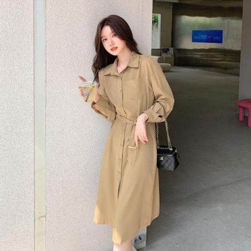 2025 신상프렌치 스타일 롱 원피스 주름 디자인 허리끈 슬림 핏 N-0032