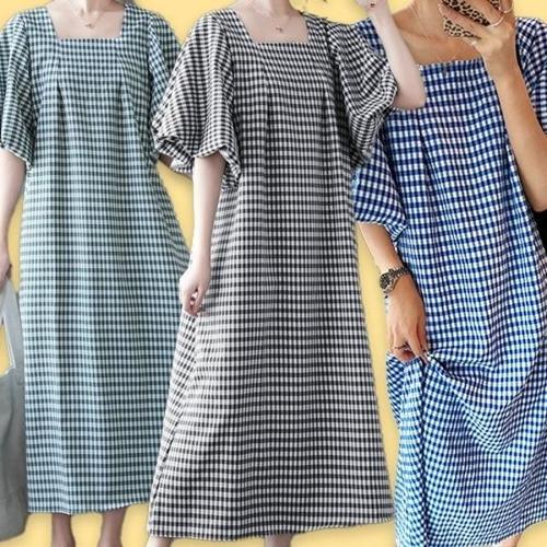 [엄지척]여성 여름 체크 반팔 루즈 오버 핏 롱 원피스_19911987_667501