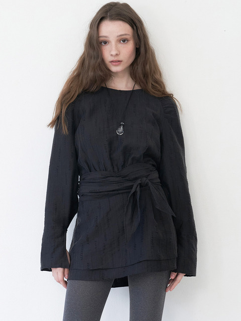 [쟈습] [2차 재입고] Leaf Scratch Tie Dress (Black)